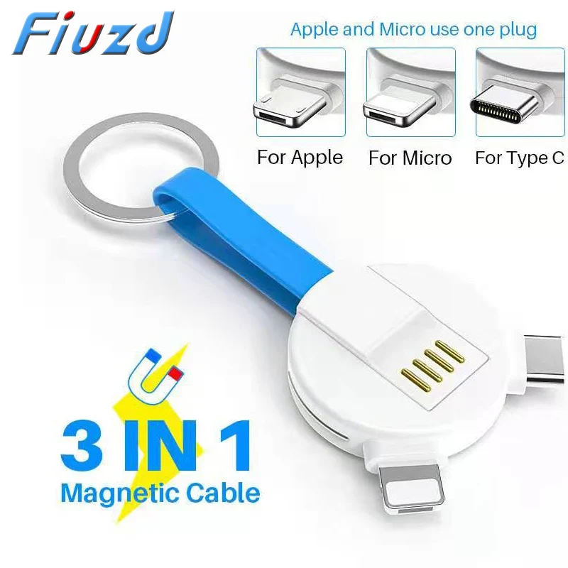 Cheap Offer for 3 in 1 phone adapter charger For Lighting Cable For iPhone 11 pro max 7 8 plus Samsung s10+ Keychai