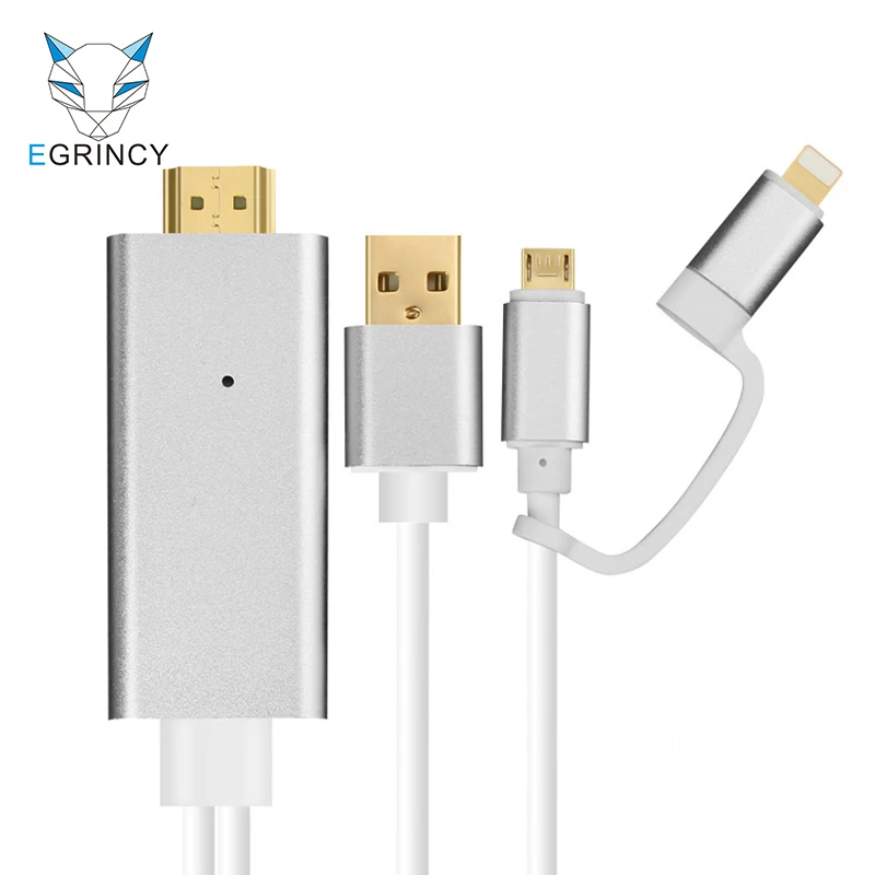 Special Price for EGRINCY 2 In 1 2m 8 Pin Micro USB To HDMI Adapter Cable 1080P HDTV Adapter USB Cable For iPhone XS